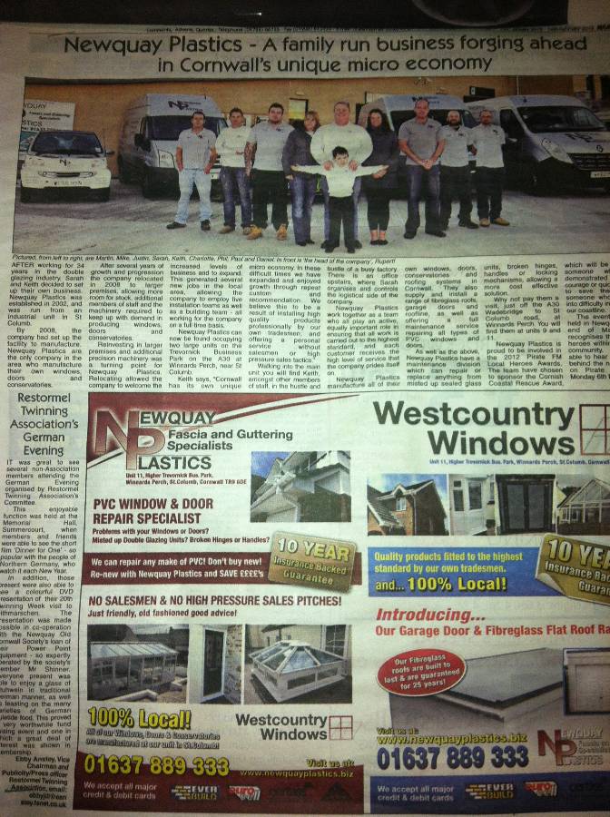 Cornwall's Mid Cornwall Advertiser gives Newquay Plastics a great review in an editorial recognising the progrssion and expansion of a local family run business in what some would call difficult times.